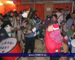 Nach dem „offiziellen“ Teil der Narrentaufe wird in einem Zelt die Taufe und das Narrenbaumstellen bis früh in den Morgen gefeiert.