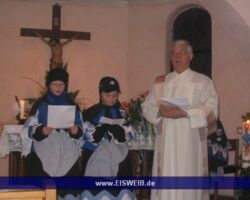 Bei einem heiteren Wortgottesdienst mit Musik und Gesang, werden die Eisweiber auf die kommende Saison eingestimmt und die Holzmasken gesegnet. Nach dem Wortgottesdienst im Käppele in Rindenmoos, findet das Narrenbaumstellen statt. Zu dieser Veranstaltung kommen zahlreiche Zuschauer aus Nah und Fern. Sogar die Patenzunft aus Ingerkingen und Vertreter anderer Zünfte nehmen jährlich an dem Spektakel teil.
